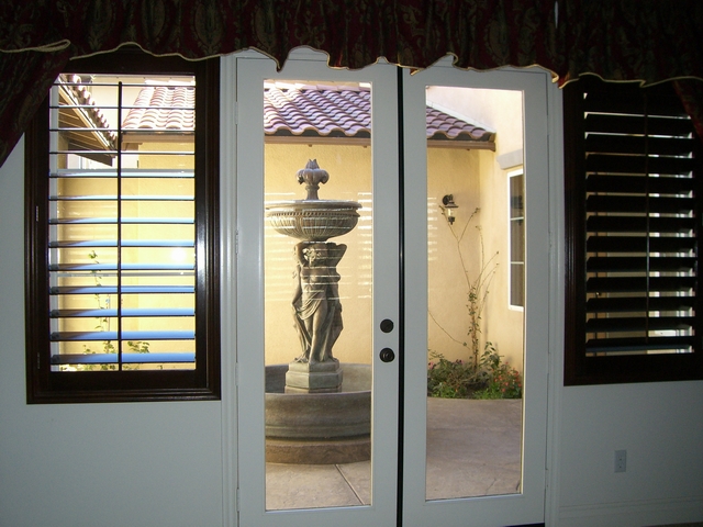 Additional amenities include a total of 3 fireplaces, 1 downstairs, a wet bar, Vaulted Ceilings, French Doors, and Dramatic Interior Courtyard.